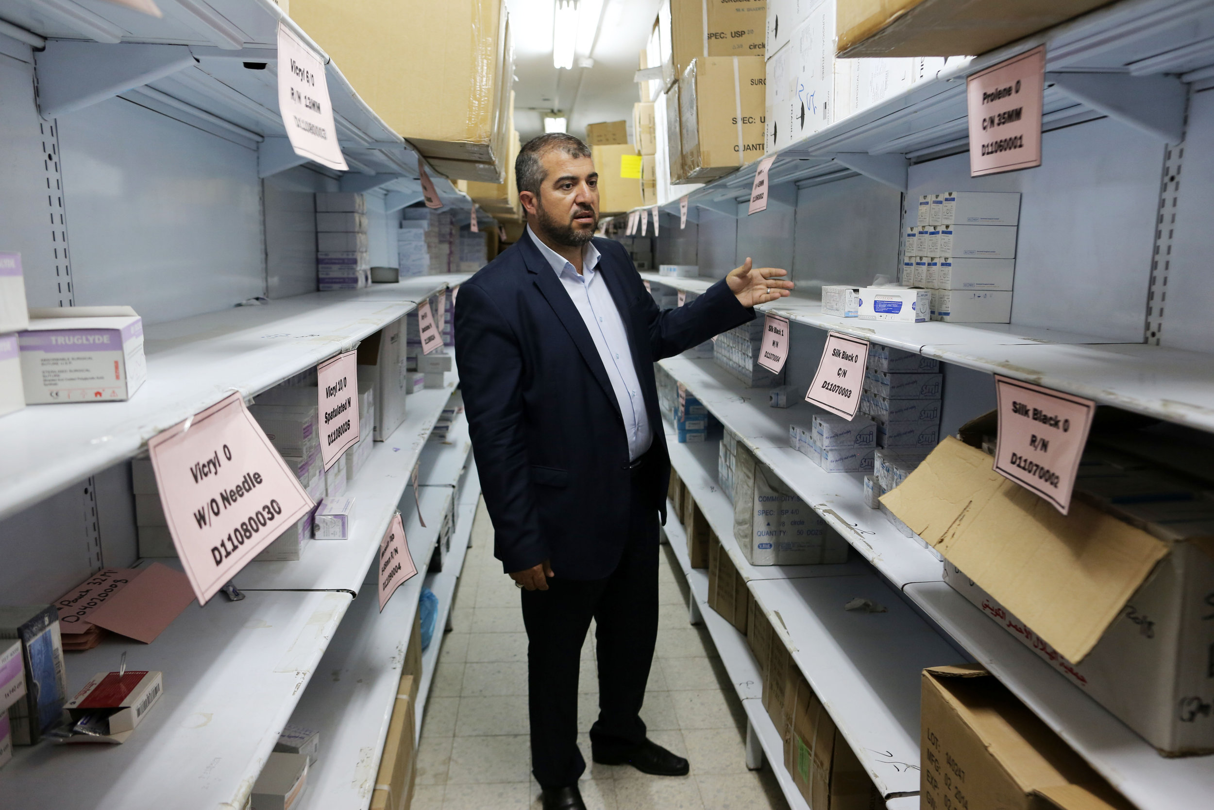 Empty shelves of medicines in Shifa Hospital in Gaza, Palestine, on 11 May 2017. The Ministry of Health in Gaza appeals for the shortage of medicines and medical supplies because...