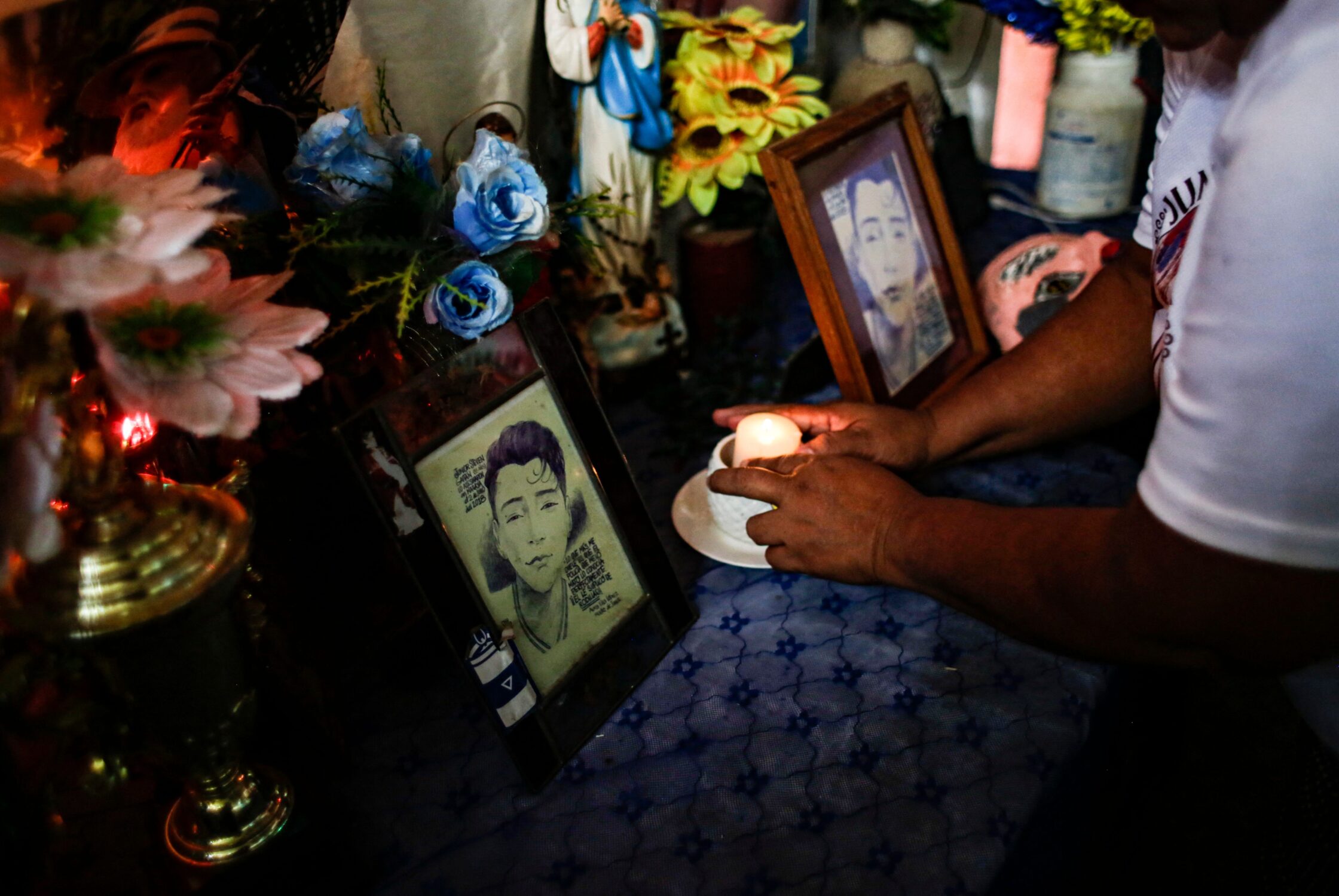 Featured Image: Aura Lila Lopez, mother of Junior Gaitan, who was shot during protests against Nicaraguan president Daniel Ortega’s government in June 2018, lights a candle for his son’s altar. Photo by Oswaldo Rivas/AFP via Getty Images.