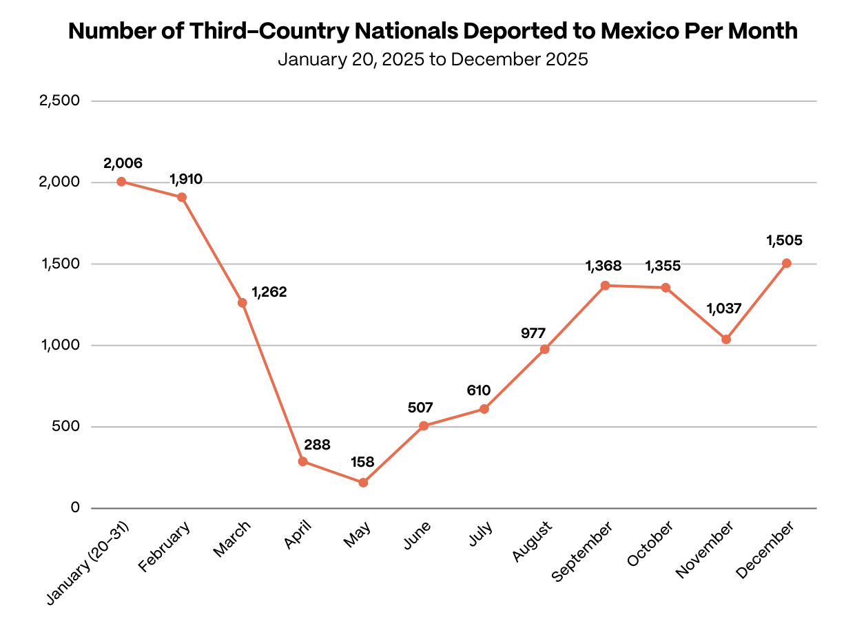 It is unacceptable for the United States to deport third country nationals to Mexico who have deep ties to the United States or whose fear claims have been recognized by U.S. immigration judges. The U.S. Congress and courts must stop removals to Mexico that lead to family separation, refoulement, or harm because of the lack of available services and support. However, it is likely that unjust and inhumane removals of third country nationals from the United States to Mexico will expand in 2026 to encompass people the U.S. administration has newly stripped of legal protected statuses and those coerced into agreeing to deportation due to increasingly brutal conditions of detention and threats of banishment elsewhere. In the face of this cruel reality, there are steps the Mexican government should take to mitigate the harm of these removals and provide those subject to removal more rights, support, and say in how they are treated.